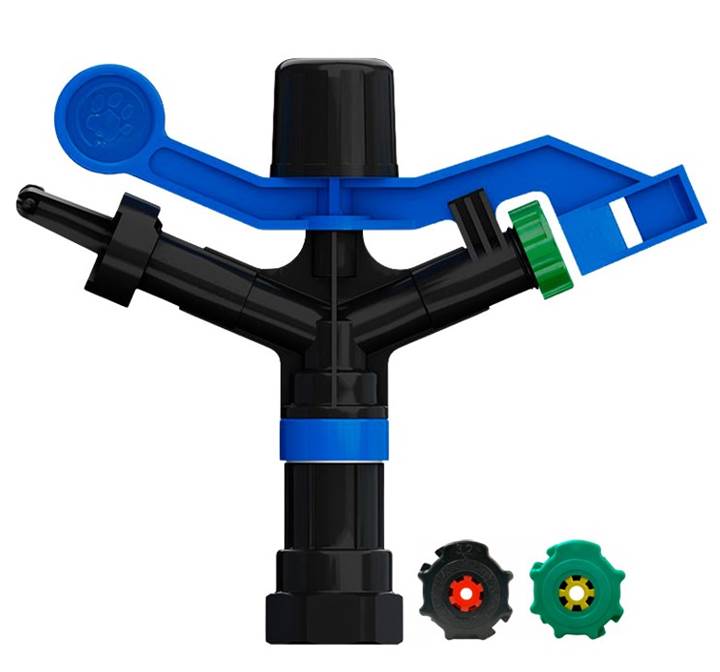 Aspersor de impacto ECO 4832 Tigre com rosca BSP 1" fêmea e bocais 4.8x3.2mm. Ideal para irrigação de áreas agrícolas e sistemas automatizados, com diâmetro de irrigação de até 30m.