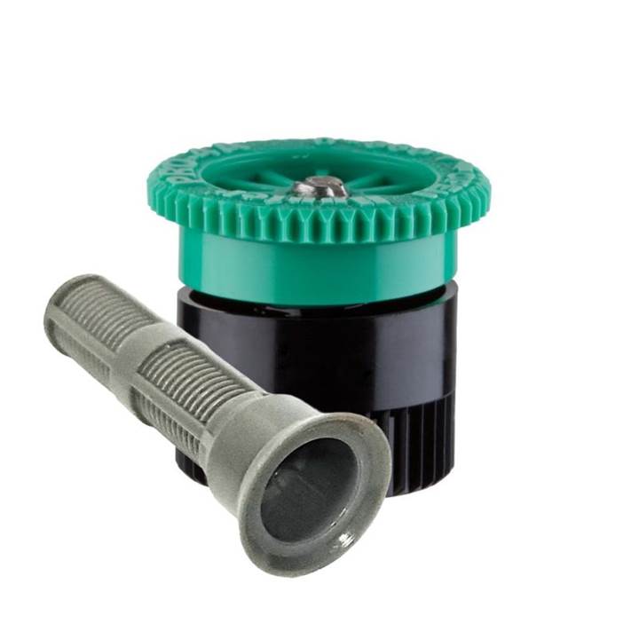 Bocal Spray 4A Verde Claro da Hunter oferece ajuste preciso e resistência ao vento para irrigação eficiente em espaços pequenos.