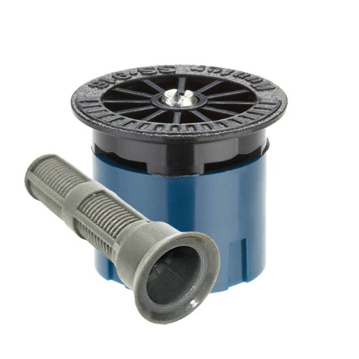 Bocal Spray SS918 Hunter com faixa lateral e raio de 2,7 x 5,5 m. Oferece cobertura precisa para áreas retangulares estreitas e resistência a condições rigorosas. Recomendado para pressão de 2,1 bar.