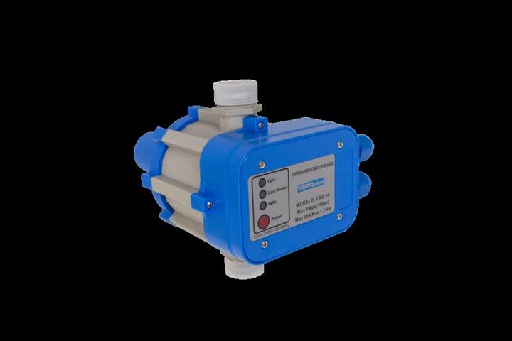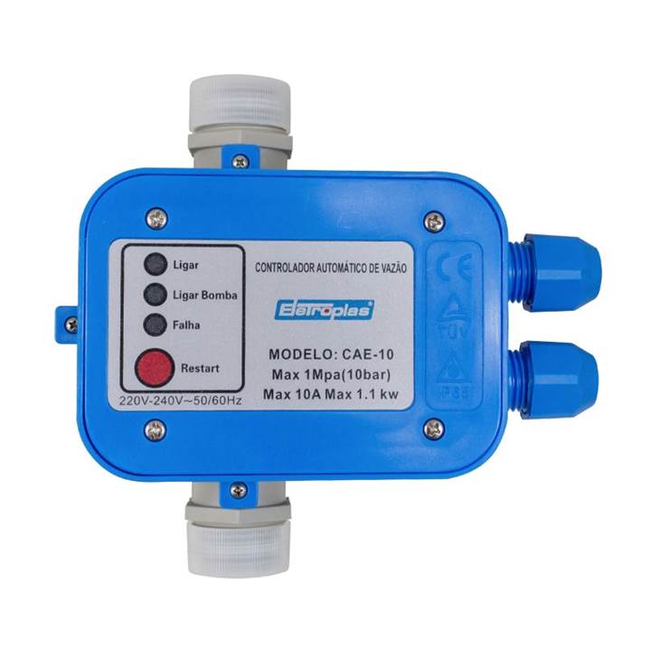 Controlador automático de pressão Eletroplas CAE-10-1, monofásico 220V, ideal para motobombas até 10A. Mantém pressão estável em sistemas hidráulicos residenciais com segurança e eficiência.