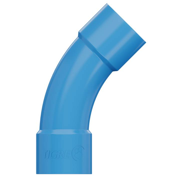 Curva 45° DN32 Irriga Tigre com bolsa e bolsa, ideal para condução eficiente de água em sistemas de irrigação. Fabricada em PVC resistente e durável, com instalação prática e segura.