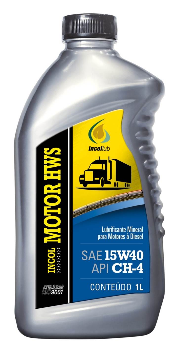 Óleo lubrificante mineral 15W40 INCOL Motor HWS para motores a diesel, multiviscoso, atende API CH-4, com registro ANP 5381, proteção contra desgaste, corrosão e oxidação.