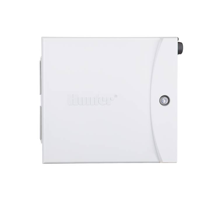 Controlador Hunter ICC-2 de 8 setores com gabinete em plástico e operação externa. Sistema modular com monitoramento de vazão integrado, compatível com EZDS de dois fios e Centralus™. Ideal para projetos de irrigação residenciais, comerciais e esportivos.