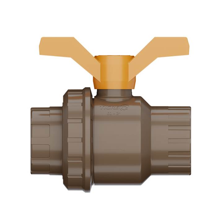 Registro esfera roscável com união DN1/2 Tigre marrom. Ideal para controle do fluxo de água com facilidade de manutenção e desmontagem prática.