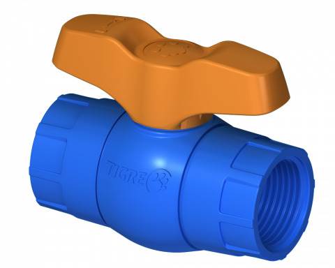 Registro Esfera Roscável DN1 .1/2 Tigre em PVC azul para irrigação. Ideal para sistemas fertirrigados, com instalação fácil, alta vedação e durabilidade.