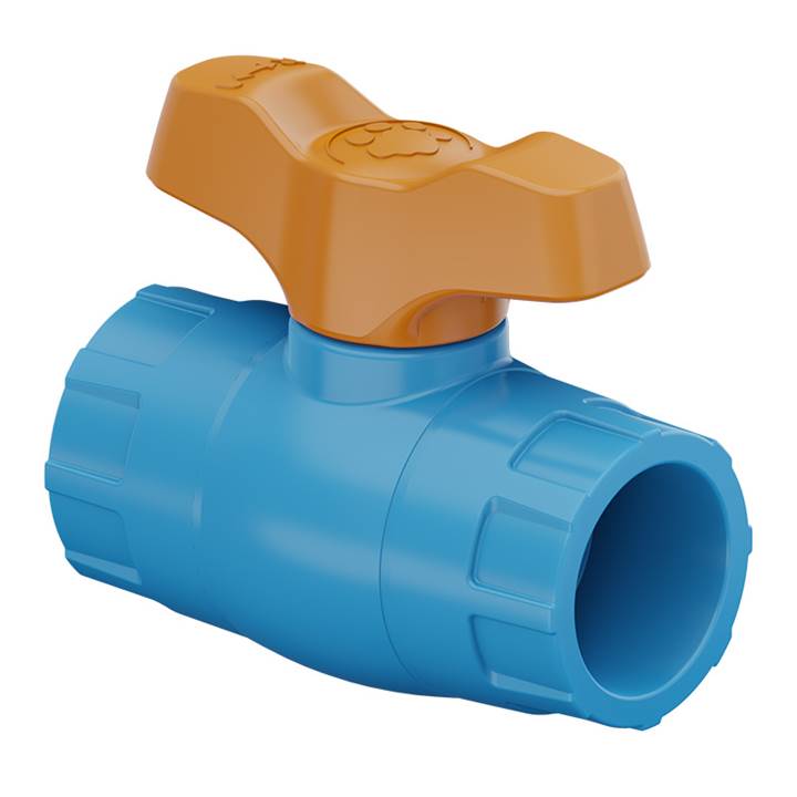 Registro Esfera Soldável DN20 Tigre em PVC azul. Ideal para sistemas de irrigação com fertirrigação, resistente a produtos químicos e fácil de instalar.