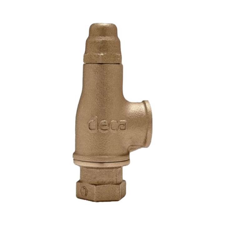 Válvula de alívio DN1.1/2 Deca em bronze, indicada para controle de sobrepressão em sistemas hidráulicos. Vedação metálica, rosca BSP, alta durabilidade e pressão de abertura de fábrica em 7 bar.