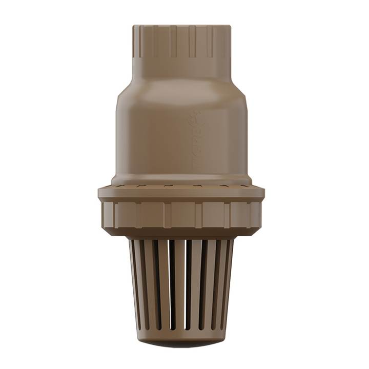 Válvula PE DN1 marrom Tigre. Ideal para manter o tubo de sucção cheio, reduzindo a escorva da bomba em sistemas hidráulicos residenciais e industriais.